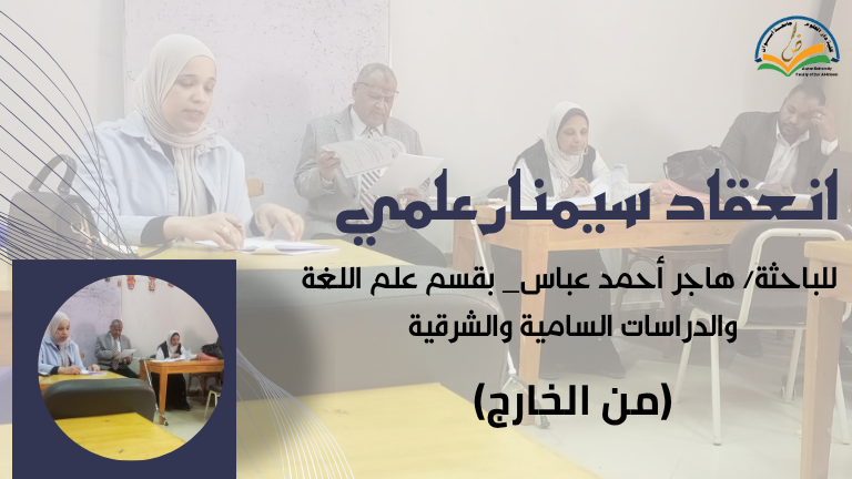 تحت رعاية الأستاذ الدكتور/ عبدالحفيظ مصطفى عبدالهادي_ عميد كلية دار العلوم، والأستاذ الدكتور/ مجدي إبراهيم_ وكيل الكلية لشئون الدراسات العليا والبحوث، انعقد يوم الإثنين الموافق 2026/3/30م، سيمنار علمي بقسم علم اللغة والدراسات السامية والشرقية، لمناقشة خطة البحث المقدَّمة من الباحثة/ هاجر أحمد عباس، وذلك تمهيدًا للتسجيل بدرجة الماجستير (من الخارج).