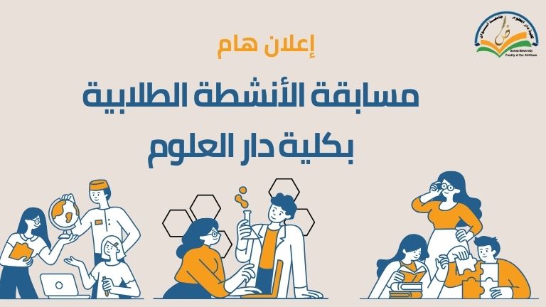 تحت رعاية الأستاذ الدكتور/ محمد أحمد أبو الشيخ _عميد كلية دار العلوم، تُعلن كلية دار العلوم – جامعة أسوان، عن انطلاق مسابقة الأنشطة الطلابية، وذلك في إطار الحرص على تنمية مواهب الطلاب وصقل مهاراتهم، علمًا أن آخر موعد للتسجيل ٢٠٢٥/٤/١٥ بوحدة رعاية الشباب بالكلية ، وتشتمل المسابقة على المجالات التالية: