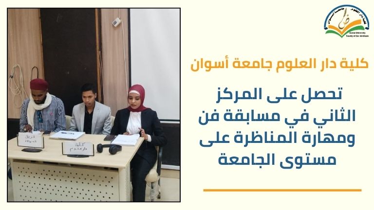 حصلت كلية دار العلوم جامعة أسوان على المركز الثاني في مسابقة فن ومهارة المناظرة على مستوى الجامعة، بعنوان “الانفتاح الثقافي بين مؤيد ومعارض”، حيث أن هذه المسابقات تعكس دعم الجامعة للأنشطة الطلابية وتنمية الإبداع والمنافسة بين الكليات، مما يبرز تميز طلابها ورفع اسم الكلية والجامعة.