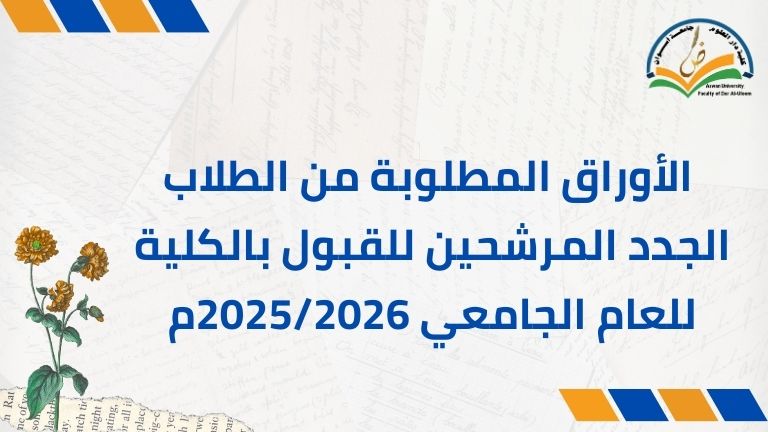 تعلن كلية دار العلوم جامعة أسوان عن الأوراق المطلوبة من الطلاب الجدد المرشحين للقبول بالكلية للعام الجامعي 2025/2026م