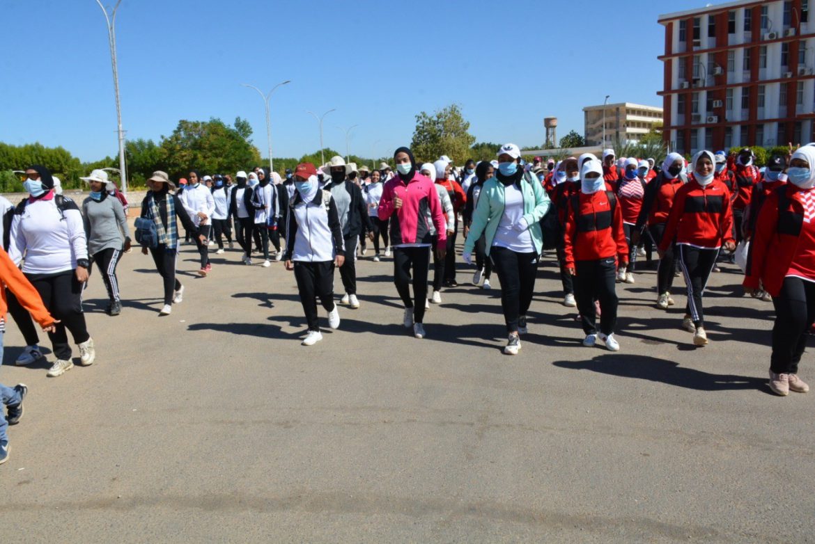 Sports activities started in front of the administrative building of the university in Sahari today by walking with implementing all precautionary measures to confront corona virus, in attendance of prof. Adel Makki_ Faculty of Physical Education Dean.