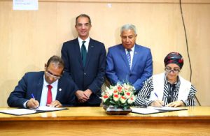 Prof. Heba Saleh _head of Information technology Institute and Prof. Ahmed Ghallab _Aswan University President assigned the cooperation protocol.