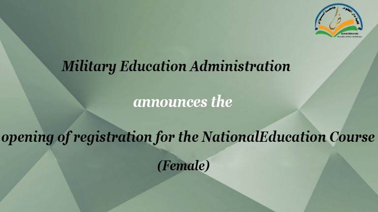 The Military Education Administration announces the opening of registration for the National Education Course (Female) No. (7), which is scheduled to be held from 6/12/2025 to 18/12/2025 at Faculty of Engineering- Abu El-Rish. Please note that registration will be online only.