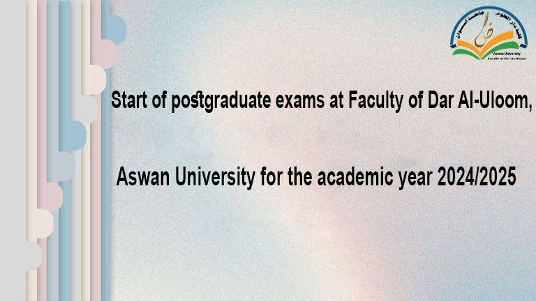 Under the patronage of Prof. Mohamed Ahmed Abo El-Sheikh, Dean of Faculty of Dar El-Uloom, Aswan University, and Prof. Magdy Ibrahim, Vice Dean for Graduate Studies and Research, graduate examinations for the 2024/2025 academic year, including Master’s and PhD programs, began on Sunday, July 6, 2025.