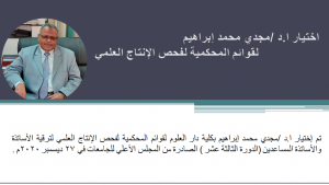 تم إختيار ا.د /مجدي محمد إبراهيم بكلية دار العلوم لقوائم المحكمية لفحص الإنتاج العلمي لترقية...