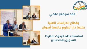 يعلن قطاع الدراسات العليا بكلية دار العلوم – جامعة أسوان عن انعقاد السيمنار العلمي لمناقشة...