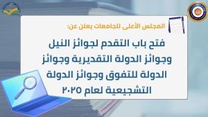 يعلن المجلس الأعلى للجامعات عن فتح باب التقدم لجوائز النيل وجوائز...
