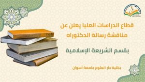 يعلن قطاع الدراسات العليا بكلية دار العلوم جامعة أسوان عن مناقشة رسالة الدكتوراه بقسم الشريعة...