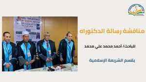 مناقشة رسالة الدكتوراه بقسم الشريعة الإسلامية للباحث/