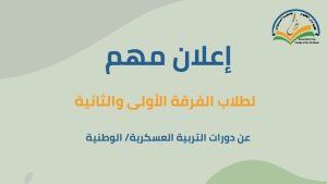 إعلان مهم لطلاب الفرقة الأولى والثانية عن