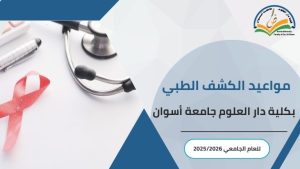 تعلن كلية دار العلوم جامعة أسوان عن مواعيد الكشف الطبي للطلاب الجدد للعام الجامعي 2026/2025،...