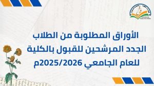 الأوراق المطلوبة من الطلاب الجدد المرشحين للقبول بالكلية