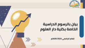 تعلن كلية دار العلوم جامعة أسوان بيان بالرسوم الدراسية الخاصة بالكلية للعام الجامعي 2026/2025م، علمًا...