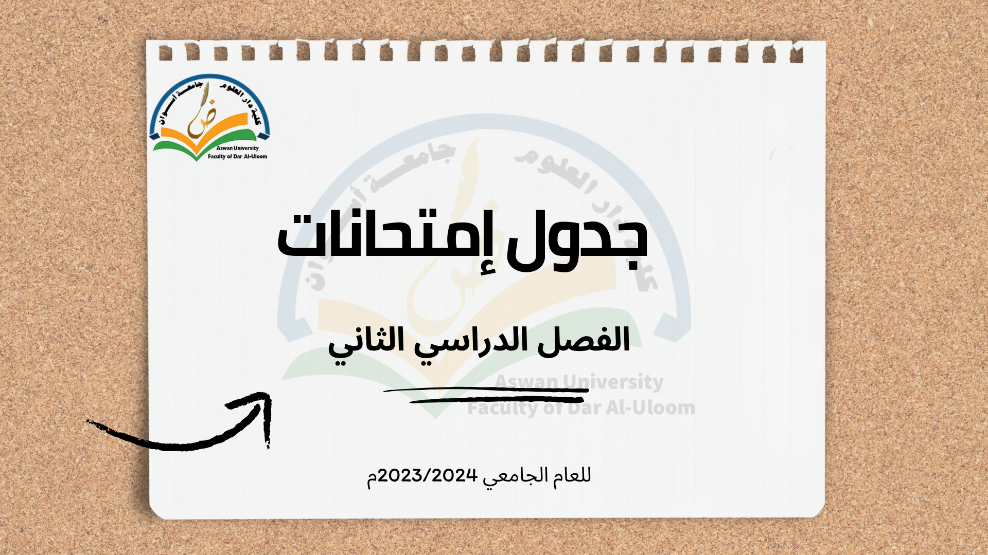 تعلن كلية دار العلوم جامعة أسوان عن جداول امتحانات الفصل الدراسي الثاني (انتظام_ انتساب) للعام...