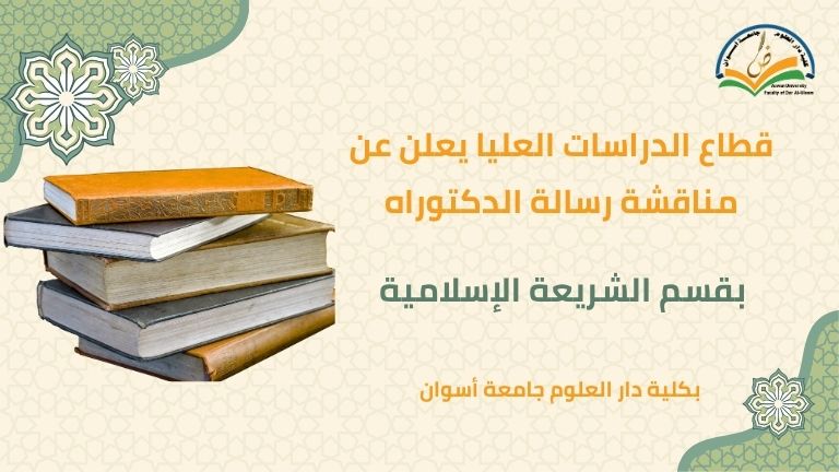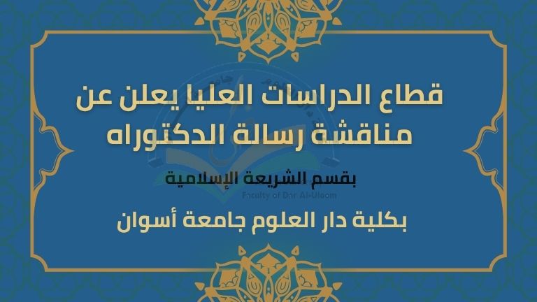 يعلن قطاع الدراسات العليا بكلية دار العلوم جامعة أسوان عن مناقشة رسالة الدكتوراه بقسم الشريعة...