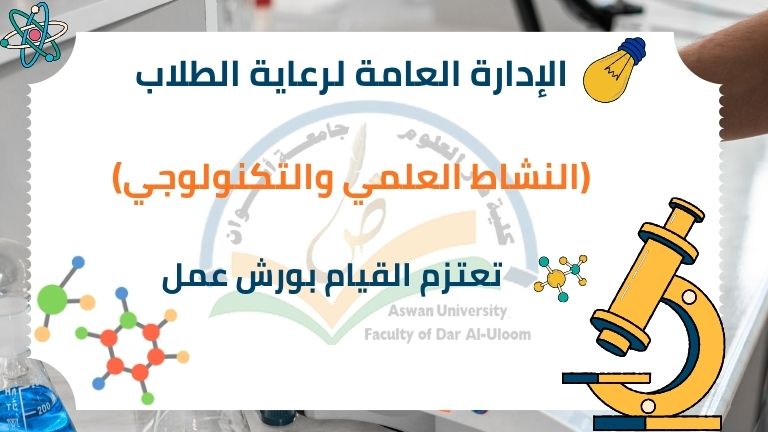 تعتزم الإدارة العامة لرعاية الطلاب (النشاط العلمي والتكنولوجي) القيام بتنظيم العديد من ورش العمل للعام الجامعي 2025/2026 وهي كالتالي :