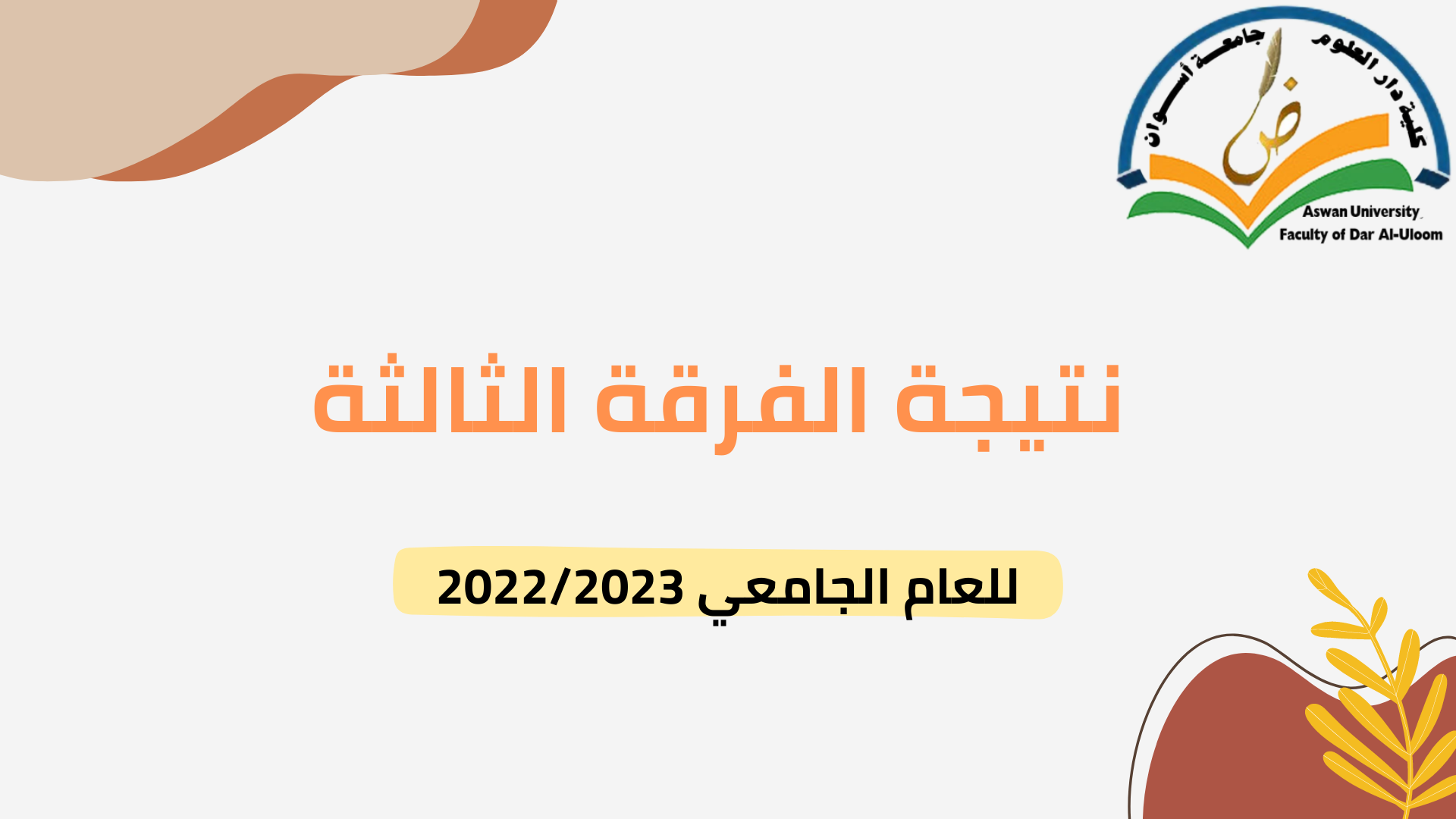 تعلن كلية دار العلوم جامعة أسوان عن ظهور نتيجة الفصل الدراسي الثاني، للفرقة (الثالثة) للعام الجامعي 2022/2023م.